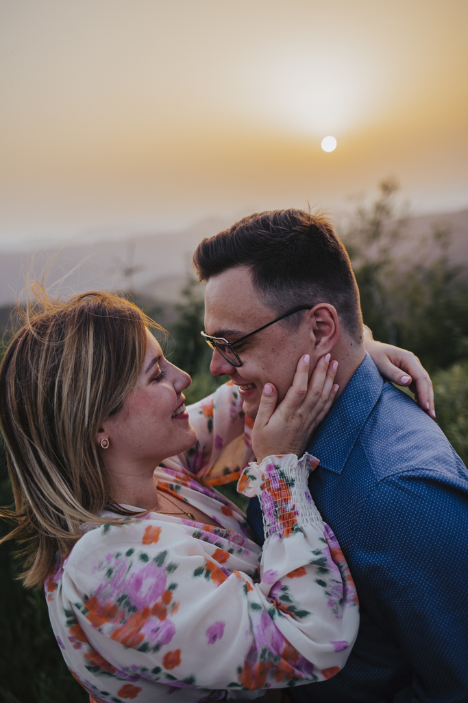 In der Nähe des Hohlohturms haben Fabi und ich dann DIE Location ausgewählt (ein rießiger Stein) und dort etwas schönes inszeniert: Nachdem ich zuerst Fotos im Sonnenuntergang gemacht hab, positionierte ich die beiden auf DEM Stein und gab ich ihm anschließend den Ring. Ich wählte ein Lied auf dem Handy, das die beiden verband und stellte die Lautstärke auf Maximum ein. Mit zittrigen Knien gab es dann einen wunderschönen Heiratsantrag und das Beste war: Sie hat Ja gesagt!
