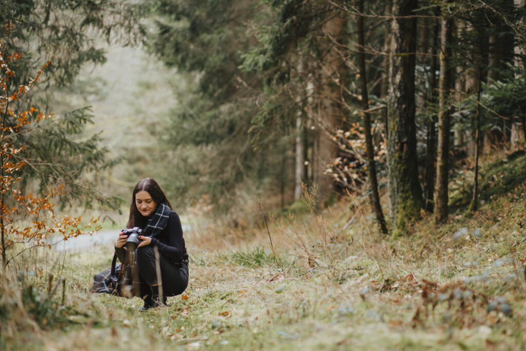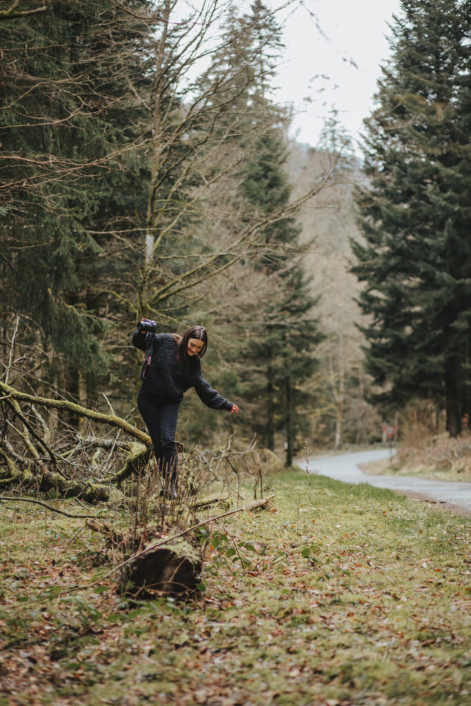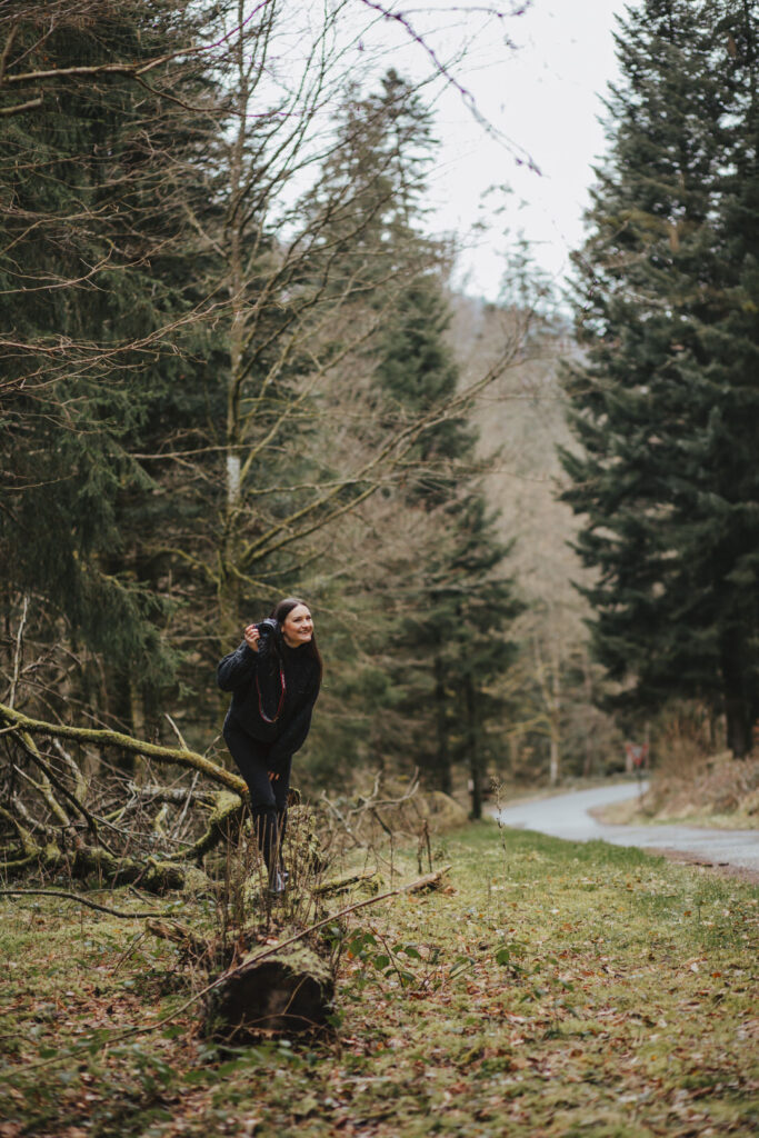 Nach dem Motto: Ab in den Wald – Kamera raus und nutzen was da ist: Natur und eine grüne Hütte. Ihr findet ein paar Bilder, die sie von mir gemacht hat auch bei ÜBER MICH.